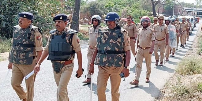 – कई थाना क्षेत्रों के मिश्रित आबादी वाले क्षेत्रों में किया पैदल मार्च