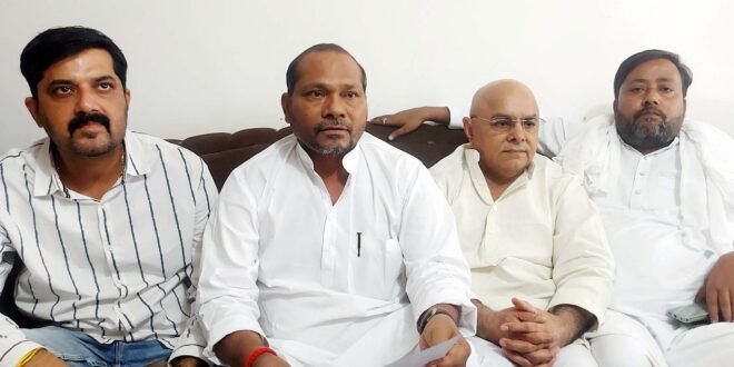 – पत्रकारों से बातचीत करते कांग्रेसी।