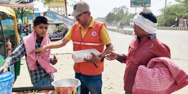 फतेहपुर। चिलचिलाती धूप, गर्मी के प्रभाव से कोई बीमार न हो इस भाव को मन मंे रखकर रविवार की दोपहर इंडियन रेडक्रास सोसाइटी, आरोग्य भारती, दि होम्योपैथिक मेडिकल एसोसिएशन ऑफ इंडिया के तत्वावधान व डॉ सत्यनारायण सेवा फाउंडेशन के संयोजकत्व में चेयरमैन व प्रदेश कार्यकारिणी सदस्य डॉ अनुराग श्रीवास्तव ने ऐसे व्यक्ति जो इस चिलचिलाती धूप में ठेला लगाकर जीवनयापन करने को मजबूर हैं। उन्हें हीटवेव से बचाव हेतु अंगौछा व रोगप्रतिरोधक क्षमता विकसित करने में सहायक होम्योपैथिक औषधि भी प्रदान की गई। साथ ही सभी ठेले वालों, सब्जी विक्रेताओं को अधिक पानी पीने व खाली पेट न रहने की सलाह भी दी। डॉ अनुराग ने सदर अस्पताल से लखनऊ बाईपास तक में खुले में बैठे सब्जी विक्रेताओं व ठेले वालों को अंगौछा व औषधि प्रदान की गई। साथ ही इन चौराहों में उपस्थित पीआरडी के जवानों को भी औषधि प्रदान की गई। इस अवसर पर प्रमुख सहयोगी उमेश कुमार श्रीवास्तव आजीवन सदस्य व चैतन्य कुमार संयोजक दिव्यांग प्रकोष्ठ इंडियन रेडक्रास सोसाइटी उपस्थित रहे।