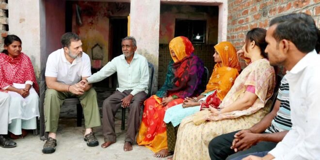 – पीड़ित परिवार के दुख को साझा करते नेता प्रतिपक्ष राहुल गांधी।