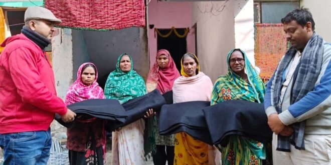 – जरूरतमंदों को कंबल वितरित करते रेडक्रास चेयरमैन।
