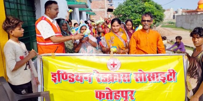 फतेहपुर। इंडियन रेडक्रास सोसाइटी के चेयरमैन व उत्तर प्रदेश कार्यकारिणी के सदस्य डा. अनुराग श्रीवास्तव के नेतृत्व में गढ़ीवा व कांशीराम कालोनी (महर्षि विद्या मंदिर के पीछे) चिन्हित अतिजरूरतमंद कांशीराम कालोनी की 35 व गढ़ीवा की 89 कुल 124 महिलाओं को सेनेटरी पैड, नहाने का साबुन, कपड़े धुलने का साबुन, टूथपेस्ट, टूथब्रश इत्यादि प्रदान किया। साथ ही डॉ अनुराग ने सभी महिलाओं को स्वच्छता के प्रति जागरूक किया। माहवारी के समय गंदे कपड़े के इस्तेमाल से होने वाली बीमारियों से बचाव हेतु सेनेटरी पैड का इस्तेमाल करने के लिए समझाया तत्पश्चात डॉ अनुराग ने गढ़ीवा मोहल्ले के 82 बच्चों को डेंगू से बचाव व रोग प्रतिरोधक क्षमता विकसित करने में सहायक होम्योपैथिक औषधि प्रदान की। सभी बच्चों को स्वच्छता के प्रति जागरूक किया। खाने से पहले एवं शौच जाने के बाद साबुन से हाथ धुलने, कहीं भी रुके हुए पानी को हटाने के लिए बताया क्योंकि रुके हुए पानी में मच्छर का जन्म होता है। इस अवसर पर प्रमुख सहयोगी आचार्य रामनारायण, शांति देवी व संयोजक होम्योपैथिक केमिस्ट प्रकोष्ठ इंडियन रेडक्रास सोसाइटी अभिनव श्रीवास्तव उपस्थित रहे।
