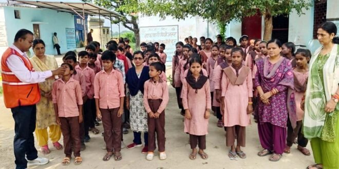 – बच्चों को दवा वितरित करते रेडक्रास चेयरमैन।