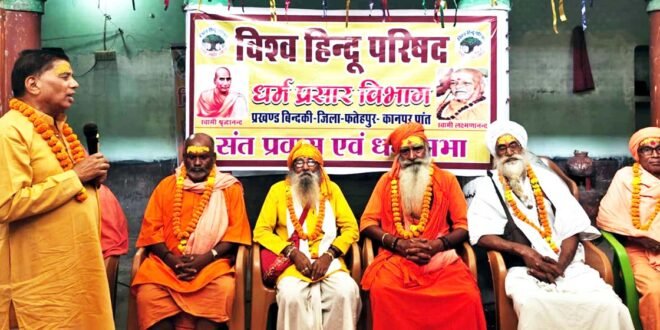 बिंदकी, फतेहपुर। विश्व हिंदू परिषद ने संत प्रवास एवं धर्म सभा का आयोजन किया। जहानाबाद क्षेत्र के विधायक राजेंद्र सिंह पटेल ने कहा कि धर्म गुरु हिंदुओं को जागृत व संगठित करने का काम करते हैं। धर्म गुरुओं का प्रयास सराहनीय रहता है। सभी को उनका सम्मान करना चाहिए।