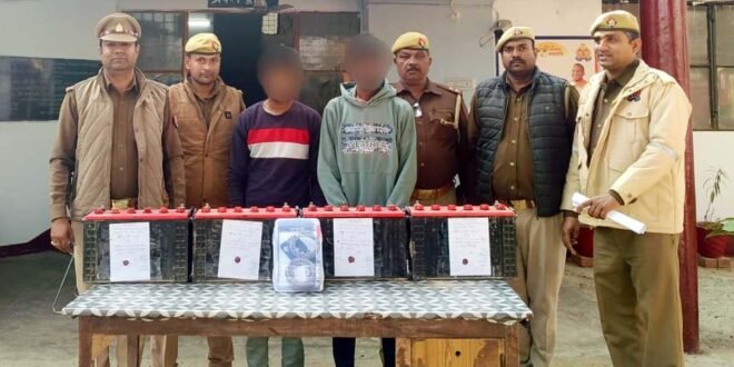 फतेहपुर। औंग थाना पुलिस ने थाने में पंजीकृत चोरी की घटनाओं का खुलासा करते हुए इन घटनाओं में संलिप्त दो अभियुक्तों को गिरफ्तार कर लिया। उनके पास से एक जोड़ी छागल समेत बैटरी व 3300 रूपए बरामद किए हैं। पुलिस ने दोनों के खिलाफ सुसंगत धाराओं में कार्रवाई कर न्यायालय भेज दिया। बताते चलें कि औंग थाने पर पंजीकृत मु0अ0सं0 131/25 धारा 331(4), 305(ं), 317(2) बीएनएस व मु0अ0सं0-121, 25 धारा 305(ं), 317(2), 331(4) बीएनएस व मु0अ0सं0-122/25 धारा 115(2), 351(2), 352, 333 बीएनएस का सफल अनावरण करते हुए घटना में संलिप्त अभियुक्त नीरज प्रजापति पुत्र इंद्रपाल प्रजापति निवासी गडरियान का पुरवा चौडगरा थाना कल्यानपुर व हिमांशु विश्वकर्मा पुत्र स्व0 दीनदयाल विश्वकर्मा निवासी शुक्ला नगर रावतपुर मोड थाना औंग को चोरी के एक जोड़ी छागल (चांदी) व चोरी की चार बैटरी एवं 3300 रूपये के साथ गिरफ्तार किया। गिरफ्तार अभियुक्तों को न्यायालय भेजा गया। गिरफ्तारी करने वाली टीम में वरिष्ठ उपनिरीक्षक अनुज कुमार यादव, उपनिरीक्षक रामानुज यादव, मुख्य आरक्षी सतीश मिश्रा, विनीत कुमार, आरक्षी अमित पाल व पवन कुशवाहा शामिल रहे।