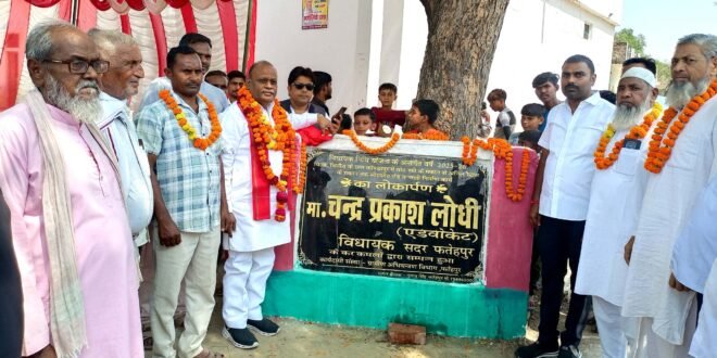 फतेहपुर। जनपद में विकास की गति देते हुए रविवार को सदर विधायक चन्द्र प्रकाश लोधी ने विधायक निधि से निर्मित विभिन्न सीसी रोड व नाली निर्माण कार्यों का भव्य लोकार्पण किया। क्षेत्रीय विकास की कड़ी में लगभग पचास लाख रुपये की लागत से पूर्ण हुई इन परियोजनाओं को रविवार को जनहित में समर्पित किया गया। विधायक चन्द्र प्रकाश लोधी ने विधानसभा क्षेत्र के अंतर्गत आने वाले ग्रामों में नवनिर्मित सड़कों का उद्घाटन किया जिसमें ग्राम बरई बुजुर्ग, कोण्डरपुर सचौली शामिल हैं। लोकार्पण समारोह के दौरान ग्रामीणों को संबोधित करते हुए विधायक चन्द्र प्रकाश लोधी ने कहा कि क्षेत्र का सर्वांगीण विकास उनकी प्राथमिकता है। उन्होंने जोर देकर कहा कि बेहतर सड़कों और जल निकासी नाली की सुविधा से ग्रामीणों के जीवन स्तर में सुधार आएगा और आवागमन सुगम होगा। इस अवसर पर क्षेत्रीय जनप्रतिनिधियों और ग्रामीणों ने विधायक का गर्मजोशी से स्वागत किया। इस मौके पर सनी लोधी, पुत्तन लोधी, ग्राम प्रधान मनोज लोधी, राम लोधी, रामचन्द्र, राजेन्द्र यादव, शिवभोला, हरिओम, बद्री विशाल, महेंद्र लोधी, मोनू, अवधेश, लाल सिंह, अखिलेश लोधी, नीरज, रोशन और आशीष, मिथलेश लोधी, मोनू लोधी, रफीक, शफीक, नवाब मलिक, रामानुज उपस्थित रहे। लोकार्पण के बाद ग्रामीणों ने सड़क निर्माण के लिए हर्ष व्यक्त करते हुए विधायक का आभार जताया।