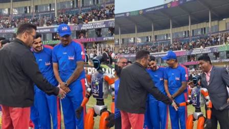 सोशल मीडिया पर सलमान खान का एक वीडियो वायरल है, जिसमें वह आईएसपीएल इवेंट में शामिल हुए। यहां पर क्रिकेट मैच देखने वह पहुंचे। इसी दौरान वह मैदान पर भी नजर आए। इसी इवेंट में एक रोबोट भी मौजूद था। इस रोबोट काे देखकर सलमान खान खुश हुए। लेकिन जब भाईजान ने रोबोट से हाथ मिलाने के लिए हाथ आगे बढ़ाया तो उसने रिएक्शन नहीं दिया। इसी वीडियो पर सलमान खान के फैंस जमकर रिएक्शन दे रहे हैं।