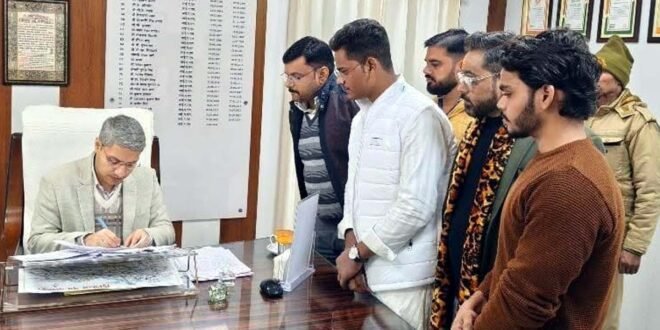 राष्ट्रपति को संबोधित ज्ञापन डीएम को सौंपते संघ के पदाधिकारी।