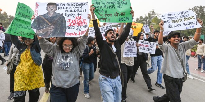 दिल्ली में इंडिया गेट पर रविवार देर शाम वायु प्रदूषण के खिलाफ प्रदर्शन में शामिल लोगों ने देश के मोस्ट वांटेड नक्सली कमांडर माड़वी हिड़मा (44) के पोस्टर लहराए। पोस्टरों में हिड़मा की तुलना आदिवासी स्वतंत्रता सेनानी बिरसा मुंडा से की गई। हिड़मा को जल, जंगल और जमीन का रखवाला बताया गया। प्रदर्शनकारियों ने “माड़वी हिड़मा अमर रहे” जैसे नारे लगाए। उन्होंने पोस्टरों पर भी “माड़वी हिड़मा को लाल सलाम” जैसे नारे लिखे थे। एक प्रदर्शनकारी के पोस्टर पर लिखा था “बिरसा मुंडा से लेकर माड़वी हिड़मा तक, हमारे जंगलों और पर्यावरण का संघर्ष जारी रहेगा।