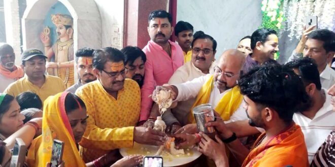 – कालिकन मंदिर में भगवान श्रीराम को दूध से नहलाते श्रद्धालु।