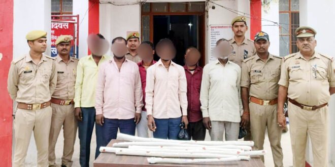 फतेहपुर। खागा कोतवाली क्षेत्र के छीमी गांव में चोरी के आरोप में 10 जुलाई की रात अधेड़ को पेड़ से बांधकर पीटने वाले छह इनामिया अभियुक्त पुलिस की गिरफ्त में आ गए। जिन्हें अकोढ़िया मोड़ अंडरपास से कटोघन को जाने वाली सड़क से दबोचा गया। पुलिस ने जिनकी निशानदेही पर हमले में प्रयोग किए गए कुल्हाड़ी डंडे को बरामद किया है।