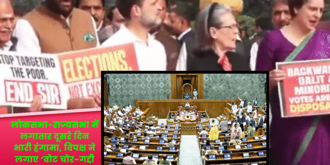 नई दिल्ली: संसद के शीतकालीन सत्र के दूसरे दिन भी विपक्ष ने SIR (सिस्टमेटिक इलेक्टर्स रजिस्ट्रेशन) और कथित वोट चोरी के मुद्दे पर दोनों सदनों में ज़ोरदार प्रदर्शन किया। जैसे ही लोकसभा की कार्यवाही सुबह 11 बजे शुरू हुई, कांग्रेस सहित तमाम विपक्षी दल के सांसद वेल में पहुँच गए और जोर-जोर से नारेबाजी करने लगे।