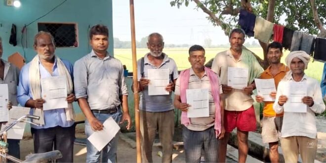 – मृदा स्वास्थ्य कार्ड के साथ किसान।