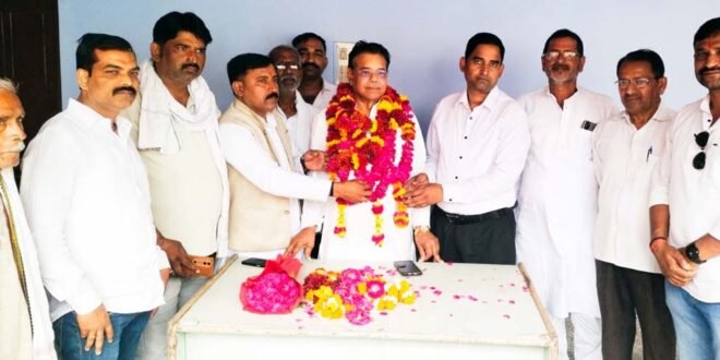 – नवमनोनीत प्रदेश सचिव का स्वागत करते समर्थक।