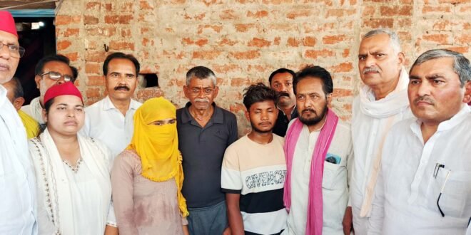 – गैंगरेप पीड़िता व उसके मंगेतर को ढाढंस बंधाते सपाई।
