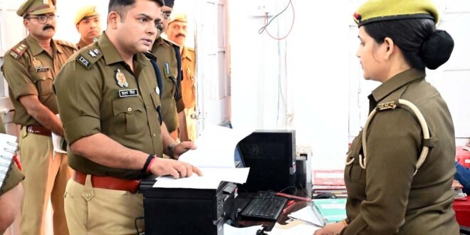 – पुलिस कार्यालय के प्रकोष्ठ का निरीक्षण करते एसपी अनूप कुमार सिंह।