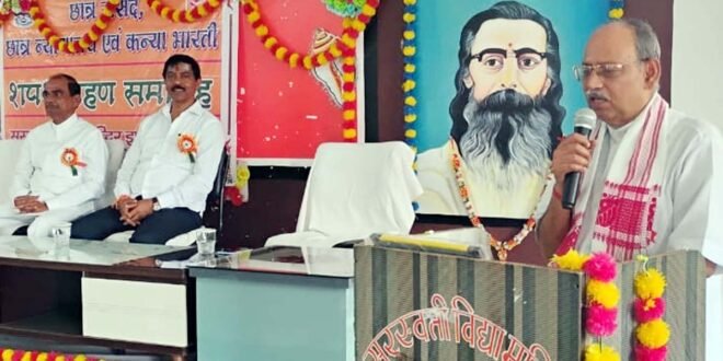 – कार्यक्रम को संबोधित करते प्रधानाचार्य।