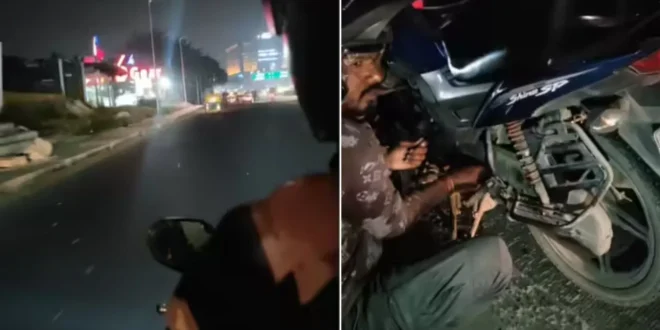 कुछ किलोमीटर बाद ही अचानक सड़क पर एक गड्ढा आया. झटका इतना तेज था कि बाइक की चेन टूट गई. चारों तरफ अंधेरा था, सड़कें खाली थीं और आसपास कोई दुकान या मदद करने वाला भी नहीं था. इस स्थिति में ज्यादातर लोग राइड रद्द करने की सलाह देते हैं या नई राइड बुक करने के लिए कहते हैं लेकिन यहां बात कुछ अलग थी.