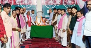 – देश हित में किए गए कार्यों का किया उल्लेख – लौह पुरूष के चित्र पर पुष्प अर्पित करते सपाई। …