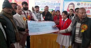 – राजरानी सोलर ग्रीन एनर्जी ने विजेताओं को किया पुरस्कृत विजेता छात्रा को इक्कीस सौ रूपए की चेक देते अतिथि। …
