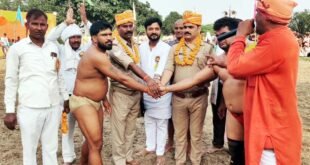 – इनामी दंगल में दांव-पेंच दिखाते पहलवान। विजयीपुर, फतेहपुर। क्षेत्र के ग्राम पंचायत गढीवा मझिगवां में इनामी दंगल का आयोजन …