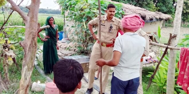 – घटनास्थल का निरीक्षण करती पुलिस टीम।