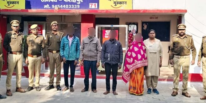 फतेहपुर। गाजीपुर थाना क्षेत्र के ग्राम मोहम्मदपुर में दस दिन पूर्व खेत में मिले किसान के शव का पुलिस ने खुलासा करते हुए इस हत्याकाण्ड में शामिल उसकी पत्नी समेत चार लोगों को गिरफ्तार कर लिया। पुलिस ने अभियुक्तों की निशादेही पर दराती भी बरामद कर ली है। प्रेम प्रसंग के चलते पत्नी ने प्रेमी, बहनोई व भाई के साथ मिलकर पति की हत्या की थी। बताते चलें कि 19 नवंबर को ग्राम मोहम्मदपुर थाना गाजीपुर में गांव से करीब तीन सौ मीटर पूर्व रामकिशोर के खेत स्थित कटहल के पेड़ के नीचे मृतक बाबूलाल पुत्र स्व0 सुंदरलाल रैदास निवासी ग्राम संवत हाल पता ग्राम मोहम्मदपुर का शव मिला था। पुलिस ने सुसंगत धाराओं में मुकदमा पंजीकृत किया था। एसपी ने पुलिस को घटना के शीघ्र खुलासे के निर्देश दिए थे। गाजीपुर थाना पुलिस की विवेचना में प्रकाश में आए अभियुक्त संग्राम सिंह पुत्र स्व0 रामगुलाम, मान सिंह पुत्र भोले, सुनीता पत्नी स्व0 बाबूलाल निवासीगण ग्राम मोहम्मदपुर व नीरज पुत्र कामता प्रसाद निवासी ग्राम सरकंडी थाना असोथर को गिरफ्तार करते हुए उनकी निशादेही पर दराती बरामद कर ली। गाजीपुर थाना प्रभारी हनुमान प्रताप सिंह ने बताया कि मृतक बाबूलाल की पत्नी का प्रेम प्रसंग संग्राम सिंह से लगभग 15 वर्षों से चल रहा था। मृतक बाबूलाल संग्राम के खेत देखता था। बाबूलाल इसका विरोध करता था और पत्नी को मारता-पीटता था। मृतक बाबूलाल घटनास्थल पर साढ़ू मान सिंह, पत्नी सुनीता व साले नीरज के साथ मौजूद था। उसके पश्चात संग्राम सिंह भी आ गया। सभी ने मृतक को अत्यधिक शराब पिलाई और उसके ही गमछे से फंदा डालकर हत्या कर दी। आत्महत्या का रूप देने के लिए गमछे को दराती से काटकर दो भाग करके कटहल के पेड़ में डालकर लटका दिया और चले गए। थाना प्रभारी ने बताया कि मृतक ने अपने साढ़ू की पुत्री को गोद भी लिया था। दोनों के बीच अनबन होने पर मृतक ने गोद ली पुत्री को अपनी सम्पत्ति में से कोई भी भाग न दिए जाने की बात लगातार की जा रही थी। सभी के खिलाफ सुसंगत धाराओं में कार्रवाई कर न्यायालय भेज दिया। गिरफ्तारी करने वाली टीम में थाना प्रभारी के अलावा वरिष्ठ उपनिरीक्षक हरिनाथ सिंह, उपनिरीक्षक अरविन्द कुमार मौर्य, हेमन्त, कांस्टेबल ललित मिश्रा, कुंदन यादव, विक्रम सिंह व सीता सिसौदिया शामिल रहीं।
