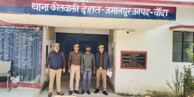 बांदा। पुलिस अधीक्षक बांदा श्री पलाश बंसल के कुशल निर्देशन में जनपद में अपराध एवं अपराधियों पर नियंत्रण लगाये जाने तथा वांछित अभियुक्तों की गिरफ्तारी हेतु की जा रही कार्यवाही के क्रम में आज दिनांक 15.11.2025 को थाना कोतवाली देहात पुलिस द्वारा युवक की हत्या के मामलें वांछित एक अन्य अभियुक्त को गिरफ्तार कर लिया गया है । गौरलतब हो कि थाना कोतवाली देहात क्षेत्र के ग्राम गुरेह में दिनांक 05.11.2025 की रात्रि गुरेह के रहने वाले युवक प्रेमचन्द्र को उसके पूर्व परिचित लोगों द्वारा फोन करके बाईपास चौराहा गुरेह बुलाया था जहां शराब ठेके के पास उनमें आपस में किसी बात को लेकर विवाद हुआ जिसमें अभियुक्तों ने प्रेमचन्द्र पर लाठी से हमला कर गंभीर रुप से घायल कर दिया गया था जिसमें प्राप्त तहरीर के आधार पर सुसंगत धाराओं में अभियोग पंजीकृत किया गया था । घायल युवक की इलाज के दौरान पीजीआई सैफई जनपद इटावा में दिनांक 09.11.2025 को दुःखद मृत्यु हो गई । अभियोग में सुसंगत धाराओं की वृद्धि करते हुए घटना में शामिल मुख्य 02 अभियुक्तों को दिनांक 12.11.2025 को गिरफ्तार कर जेल भेजा जा चुका है । इसी क्रम में आज दिनांक 15.11.2025 को घटना में शामिल एक अन्य वांछित अभियुक्त साहिल सिंह पुत्र सतेन्द्र सिंह को महोखर बाइपास के पास से गिरफ्तार कर लिया गया है । पकड़े गए अभियुक्त साहिल सिंह पुत्र सतेन्द्र सिंह निवासी गुरेह थाना कोतवाली देहात जनपद बांदा के विरुद्ध मु0अ0सं0 312/25 धारा 103/191(2)/191(3)/190/115(2)/351(3) बीएनएस थाना कोतवाली देहात जनपद बांदा में अभियोग दर्ज किया गया है