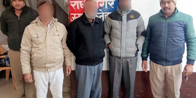 बताते चलें कि जिले में इसाई मिशनरियों द्वारा लगातार अलग-अलग क्षेत्रों में आर्थिक रूप से कमजोर लोगों को आर्थिक मदद का प्रलोभन देकर धर्म परिवर्तन कराया जाता है। इसकी आग जिले में ठण्डी होने का नाम नहीं ले रही है। पिछले वर्ष भी चर्च में बड़े पैमाने पर धर्म परिवर्तन कराए जाने के मामले मंे पुलिस द्वारा कठोर कार्रवाई की गई थी। इसके बावजूद एक बार फिर मिशनरियों ने अपने मंसूबों को अमलीजामा पहनाने की कवायद शुरू कर दी थी। जैसे ही इसकी जानकारी बजरंग दल के कार्यकर्ताओं को हुई तो वह इसाइन पुरवा स्थित चर्च पहुंचे और प्रदर्शन किया। प्रदर्शन व हंगामे की जानकारी मिलने पर पुलिस मौके पर पहुंची और मामला शांत कराया और देव प्रकाश पासवान पुत्र जगरूप निवासी सूबेदार का पुरवा मजरे अजगवां थाना थरियांव की तहरीर पर दस लोगों के विरूद्ध मुकदमा पंजीकृत किया था। राधानगर थाना पुलिस ने सोमवार को डेविड ग्लेडविन पुत्र स्व0 मन्नूलाल ग्लेडविन, अभिषेक ग्लेडविन पुत्र डेविड ग्लेडविन निवासीगण ईसाइन पुरवा देवीगंज व कृष्ण गोपाल विश्वास उर्फ के0के0 बंगाली पुत्र इन्दुभूषण विश्वास निवासी सुन्दरनगर कालोनी वर्मा चैराहा हाल पता 114/25 जी अद्वेता लेन थाना शान्तीपुर जनपद नादिया पश्चिम बंगाल को नवीन मण्डी समिति गेट के पास से मुखबिर की सूचना पर गिरफ्तार कर न्यायालय भेज दिया। गिरफ्तारी करने वाली टीम में प्रभारी निरीक्षक विनोद कुमार मौर्या, उपनिरीक्षक दिवाकर सिंह, रोहित यादव, महिला उपनिरीक्षक रिंकी वर्मा, कांस्टेबल पुष्पेन्द्र कुमार, सुधांशू शुक्ला, महिला का0 अनीता सिंह शामिल रहीं।