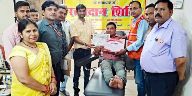 – रेडक्रास के सहयोग से अधीक्षण अभियंता कार्यालय में लगा शिविर