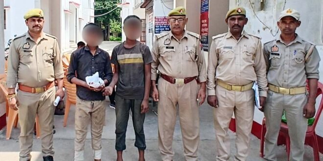 फतेहपुर। चांदपुर थाने की पुलिस ने चोरी के अभियोग का अनावरण करते हुए घटना में संलिप्त दो अभियुक्तों को गिरफ्तार कर लिया। उनके पास से चोरी के घंटे व लोहे की जंजीर बरामद की है। दोनों के खिलाफ सुसंगत धाराओं में कार्रवाई कर न्यायालय भेज दिया। चांदपुर थाना पुलिस ने चोरी के पंजीकृत अभियोग अ0सं0 112/25 धारा 331(4)/305/317(2) बीएनएस का सफल अनावरण कर संलिप्त दो अभियुक्तों भोली पुत्र राज कुमार निवासी ग्राम टफनी थाना ललौली हाल पता ग्राम सरहन बुजुर्ग थाना चाँदपुर व लल्लू पुत्र मुन्ना निवासी ग्राम टफनी थाना ललौली हाल पता ग्राम सरहन खुर्द थाना चाँदपुर को बरमपुर रोड अमौली से चोरी के चार पीतल घण्टा व एक लोहे की जंजीर सहित गिरफ्तार कर विधिक अनुक्रम में न्यायालय भेज दिया। गिरफ्तारी करने वाली टीम में उपनिरीक्षक राजित यादव, जयप्रकाश, का0 अजय कुमार, अमित कुमार राय शामिल रहे।