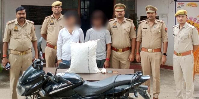 फतेहपुर। औंग थाना पुलिस व इंटेलीजेंस विंग टीम की संयुक्त टीम ने दो शातिर गांजा तस्करों को गिरफ्तार कर लिया। उनके पास से दस किलोग्राम गांजा मोटर साइकिल सहित बरामद किया है। दोनों के खिलाफ सुसंगत धाराओं में कार्रवाई कर न्यायालय भेज दिया। नवरात्र त्योहार के दृष्टिगत थाना औंग व इन्टेलीजेन्स विंग की संयुक्त टीम औंग क्षेत्रांतर्गत संदिग्ध व्यक्ति व वाहनों की सघन चेकिंग कर रही थी। तभी पल्सर मोटर साइकिल संख्या यूपी-71एडब्ल्यू/8178 पर सवार दो संदिग्ध व्यक्तियों मनोज कुमार पुत्र स्व0 शिव नारायण निवासी दरियापुर थाना हथगाव व आदर्श सिंह उर्फ गोरे पुत्र बद्री सिंह निवासी खेसहन थाना गाजीपुर को एक प्लास्टिक की बोरी में पांच पैकट में कुल 10 किलोग्राम नाजायज गांजा परिवहन कर ले जाते समय गिरफ्तार किया गया। गिरफ्तारी व बरामदगी के आधार पर थाना औंग पर मु0अ0सं0 109/2025 धारा 8/20 एनडीपीएस एक्ट पंजीकृत कर विधिक अनुक्रम में अभियुक्तों को न्यायालय भेज दिया। गिरफ्तारी करने वाली टीम में औंग थानाध्यक्ष हनुमान प्रताप सिंह, उपनिरीक्षक विकास वर्मा, आकाश सिंह, हेड कांस्टेबल विनीत कुमार, कांस्टेबल अनिल कुमार यादव, अंशुल गुप्ता, संदीप यादव शामिल रहे।