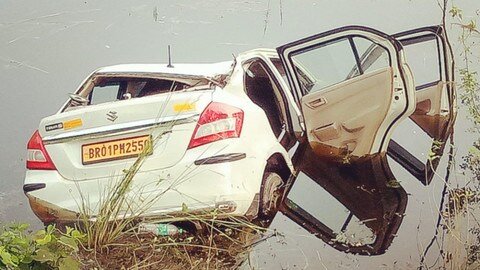 हादसे में कार बुरी तरह क्षतिग्रस्त हो गई। शव उसमें फंसे थे।