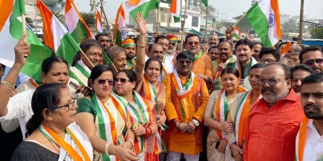 – तिरंगा झंडा के साथ भारत माता के लगे जयकारे